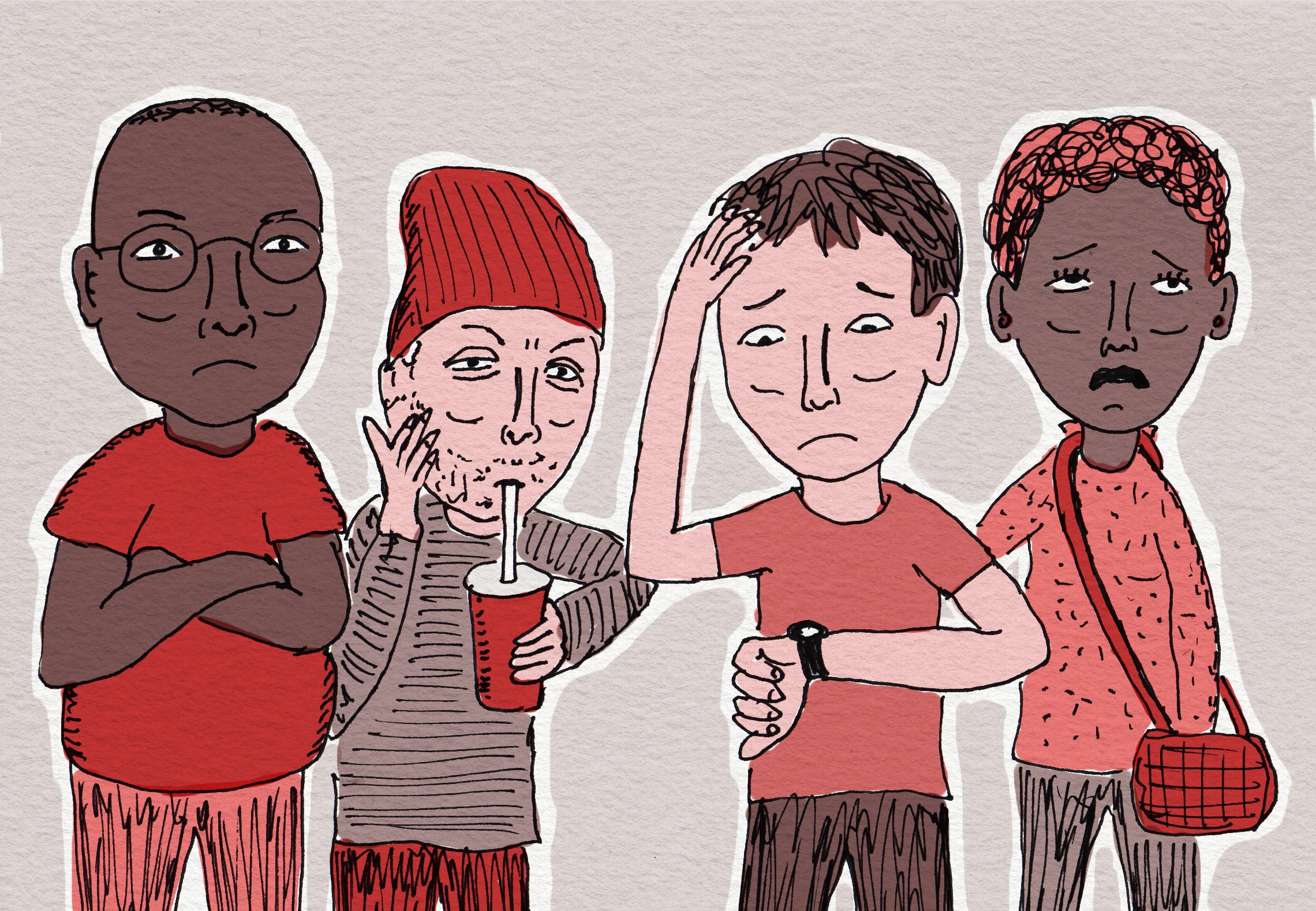 But with every passing minute of not receiving an order, people’s stoic behavior can start to crumble.