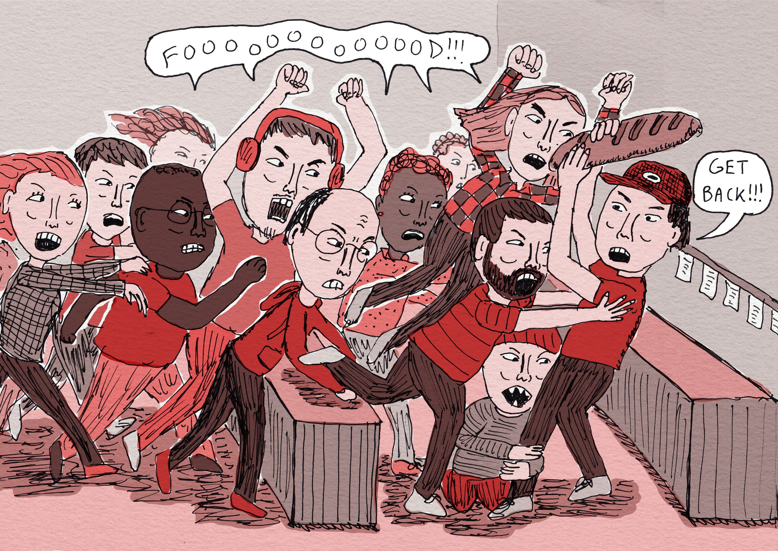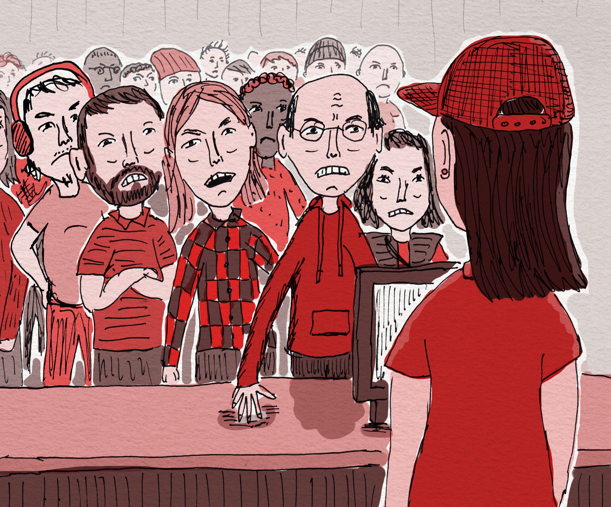 Customers started inching closer and closer to the counter, as if they thought it would put pressure on the workers to make the food faster and hand it over. They started looking like a pack of angry zombies.