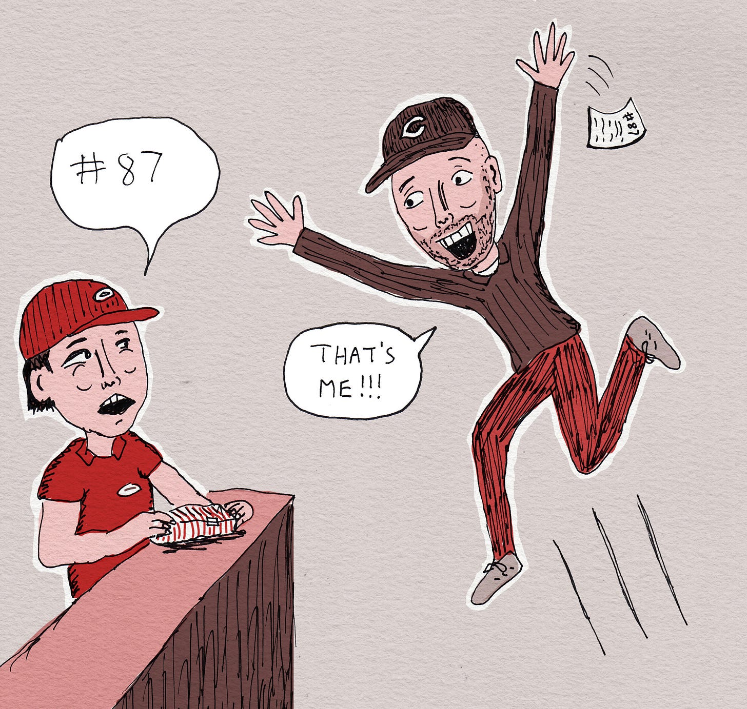 An employee was calling out order numbers that came after 87.
