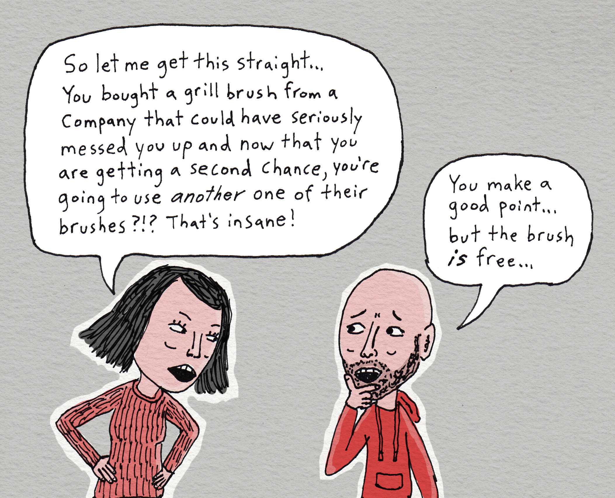 The allure of getting something free is powerful, but sometimes you learn something (like wire brushes can shed) and you adapt to the situation. I texted some friends and asked what they use for grill cleaning. One friend mentioned he was now using a bristle-free cleaner from Scrub Daddy. Seems like that might be a smart way to go. What do you guys think I should do?