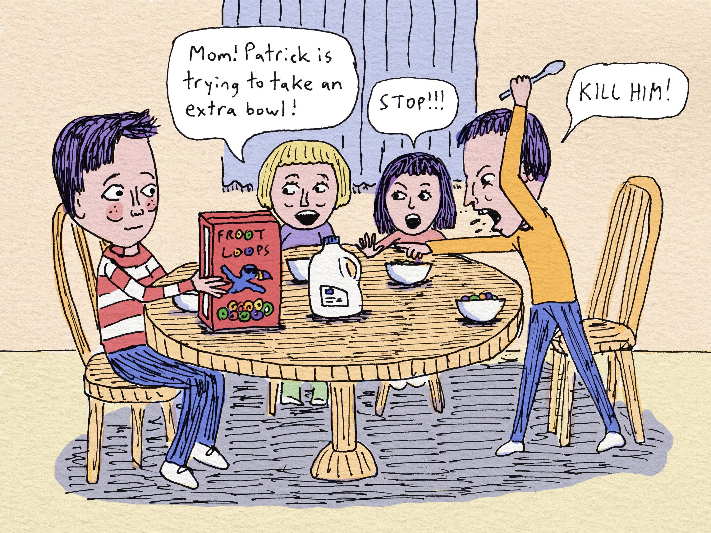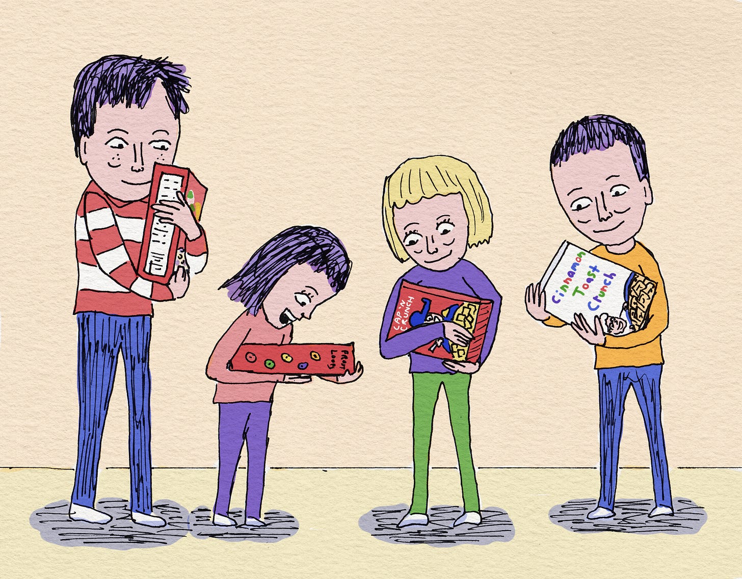 The four siblings would conduct a cereal draft to pick out 2 boxes each. Since I was the oldest, I usually got to go first.