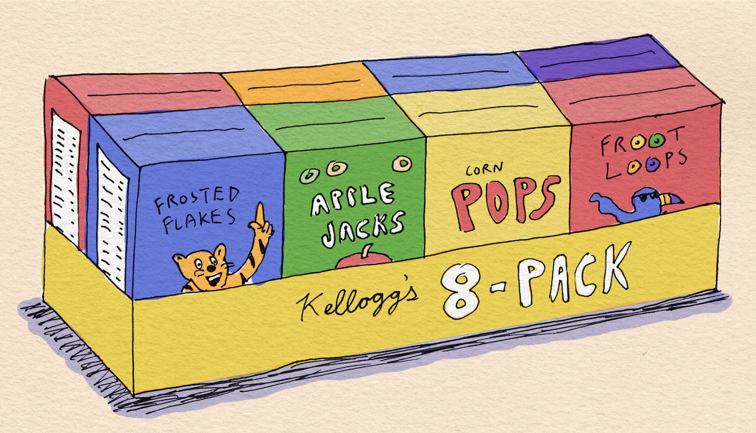 The other way sugar cereal would show up at our house was when my dad would surprise us with a Kellogg’s mini 8-pack.