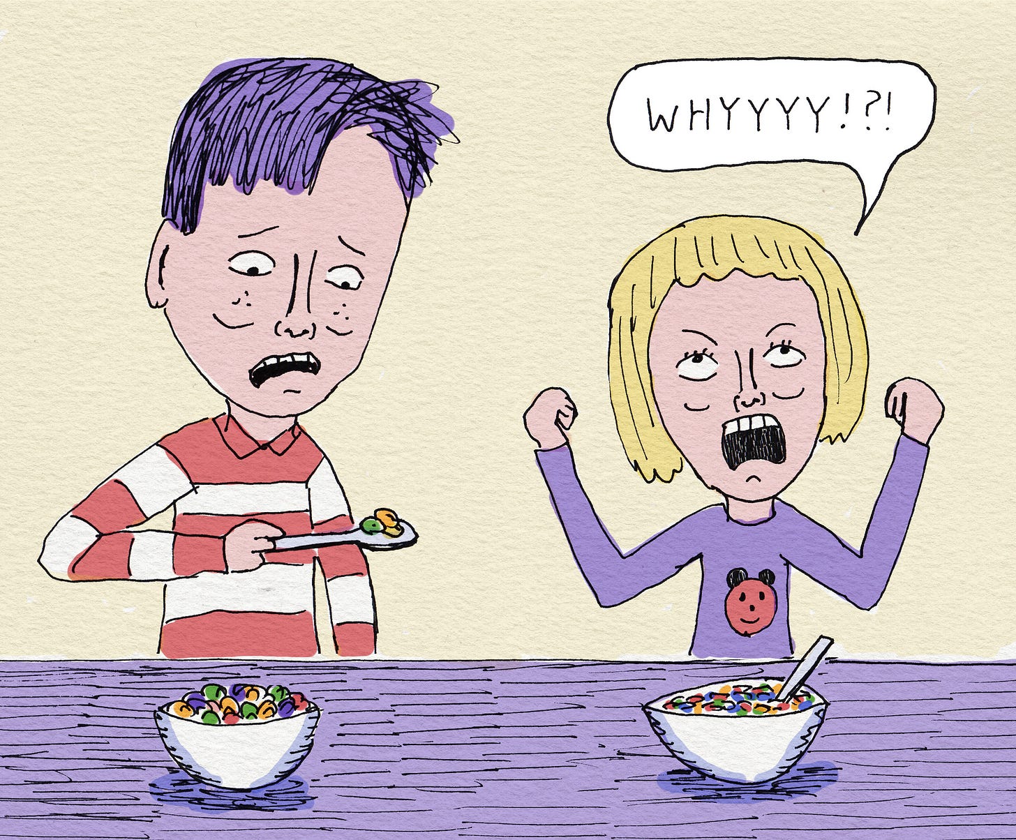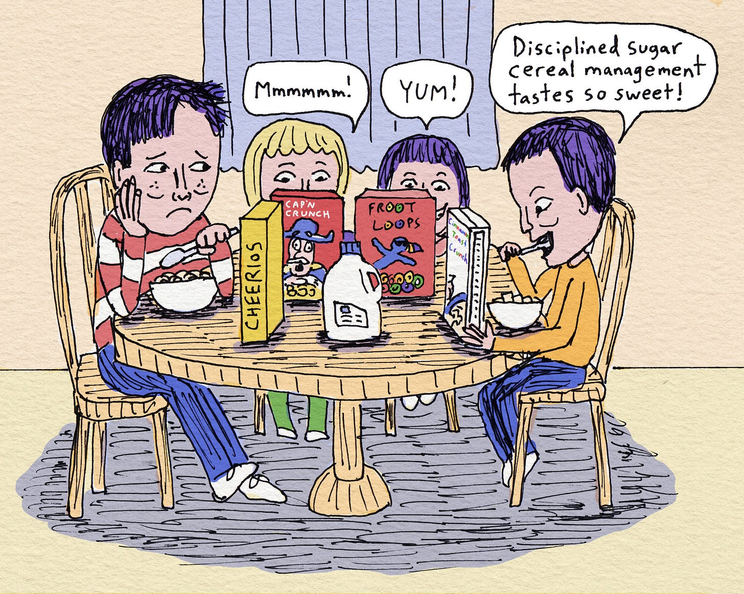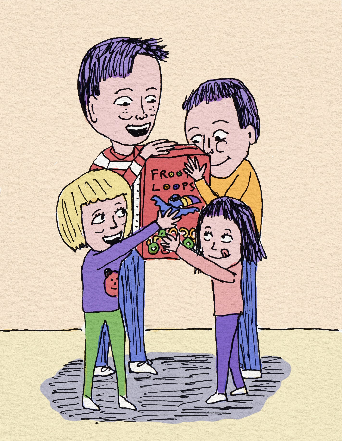 At one point, my mom conducted a cereal experiment with us. Each kid would receive a box of their favorite sugar cereal and it was up to us to manage our own box. There were no consumption limits and you also had the option of trading a bowl from your box for a bowl from your sibling’s box (if you wanted a variety of sugar). On the day we each got our boxes, we probably looked like proud parents in a newborn nursery.